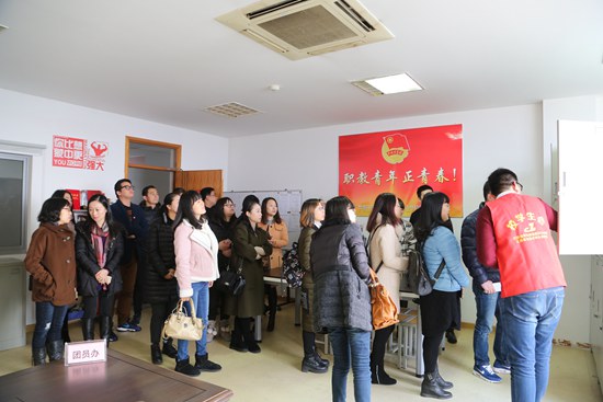 周曉書記一行先后參觀了學(xué)校團(tuán)員教育成長(zhǎng)室(團(tuán)員之家)、學(xué)生會(huì)辦公室、社團(tuán)活動(dòng)中心及特色社團(tuán)——春來謎社、團(tuán)員實(shí)踐基地——校園電視臺(tái)等團(tuán)建陣地,通過參觀讓兄弟學(xué)校的團(tuán)干部了解了我校的團(tuán)建工作亮點(diǎn)。作為團(tuán)省委公布的首批“江蘇省中學(xué)中職共青團(tuán)工作‘六個(gè)一’團(tuán)建項(xiàng)目示范校”,校團(tuán)委邵志晨書記針對(duì)省“六個(gè)一”示范校的創(chuàng)建工作以及“智慧團(tuán)建”作了詳細(xì)的匯報(bào),分享了工作中的優(yōu)秀經(jīng)驗(yàn)和典型做法。隨后,各校團(tuán)委書記圍繞《2016年中學(xué)中職共青團(tuán)工作考核細(xì)則》,通過匯報(bào)、PPT等形式對(duì)年度工作的開展情況進(jìn)行總結(jié),結(jié)合當(dāng)前中學(xué)共青團(tuán)改革背景下暢談學(xué)校共青團(tuán)工作的思考。