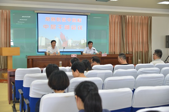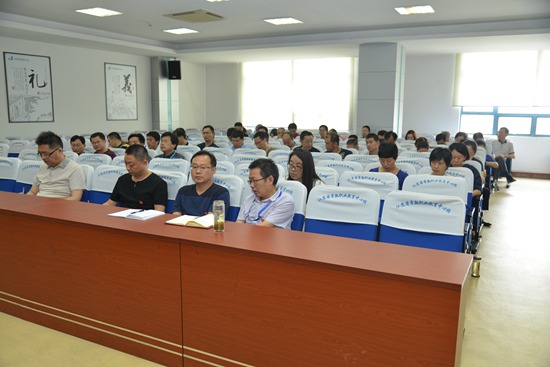 6月30日,學校班子成員、中層干部齊聚綜合樓8樓報告廳,參加了2016至2017學年度第二學期學校總結大會。會議由校黨委馬駿書記主持。蘇建青校長在會上作了重要講話。