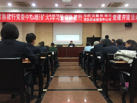 在本次黨建共建活動中,我校黨委領導、支部書記與常熟建設銀行黨委中心組成員一起聽了常熟市委黨校高級講師邵鐳作的《書寫新時代中國特色社會主義新篇章》專題輔導講座。講座中,邵鐳老師運用文字、圖片和生動形象的事例,重點圍繞新時代中國特色社會主義的重大論斷、新時代中國特色社會主義的行動綱領、十九大精神學習的領會三大方面,全面生動地解讀了黨的十九大報告。講座全面系統、深入淺出,極具思想性、理論性、指導性,為我校黨務干部全面領會、準確把握黨的十九大精神提供了指導幫助。