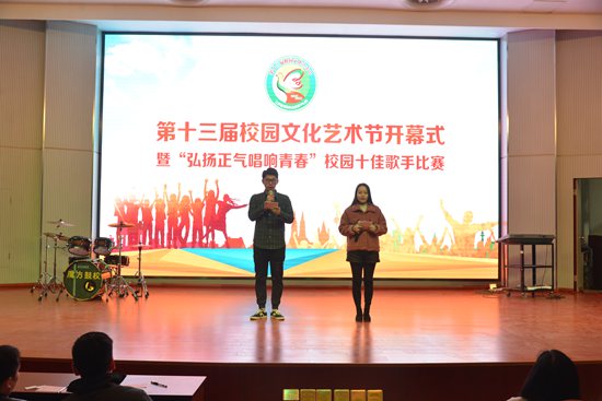 11月28日下午,在學校報告廳隆重舉行了第十三屆校園文化藝術節開幕式暨校園十佳歌手比賽。校黨委馬駿書記、王春副校長、吳國清副校長、黨委辦趙麗娟主任、學工處錢立新處長、常熟移動公司第六分公司姚梅花總經理以及師生代表600多人參加了開幕式。