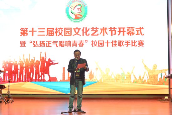 本屆校園文化藝術節以“傳遞青春正能量,引領校園新風尚”為主題。在開幕式上,吳國清副校長發表了熱情洋溢的講話。他要求以競賽活動為載體,唱響和諧、發展的主旋律,激發廣大師生愛黨愛國的情感和能量,展示我校學生的藝術修養和創新能力。他希望各部門精心做好組織工作,開展貼近校園生活、形式多樣的文化活動,全體師生以飽滿的熱情積極投身到文化藝術節的各項活動中去,充分發揮自己的聰明才智,打造精品活動,給廣大師生帶來美的享受、成功的啟迪、藝術的熏陶。