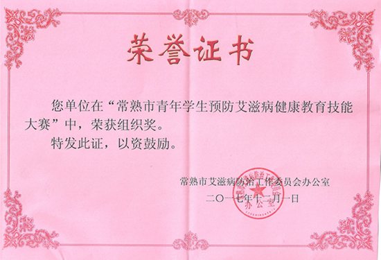 2017年12月1日是第30個“世界艾滋病日”。當天,由常熟市艾滋病防治工作委員會辦公室、常熟市衛計委、常熟市教育局等部門聯合主辦的“常熟市青年學生預防艾滋病健康教育技能大賽”在常熟市理工學院舉行。