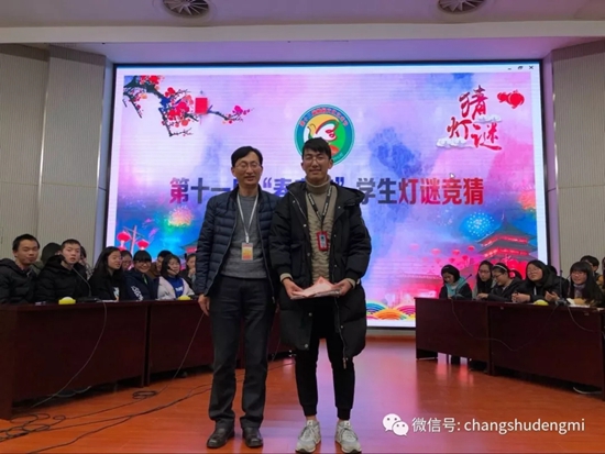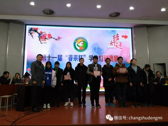 為弘揚(yáng)傳統(tǒng)文化、提高學(xué)生綜合素質(zhì),12月19日下午2點(diǎn),第十一屆“春來杯”學(xué)生燈謎競猜決賽在校報告廳隆重舉行,教學(xué)管理處徐建軍處長,學(xué)生工作處錢立新處長和600多名師生觀看了本次大賽。比賽邀請常熟市燈謎學(xué)會翁永剛會長、副會長張志強(qiáng)、理事顧劍青、和春來謎社的副社長張建國擔(dān)任評委,由春來謎社副社長張震主持。