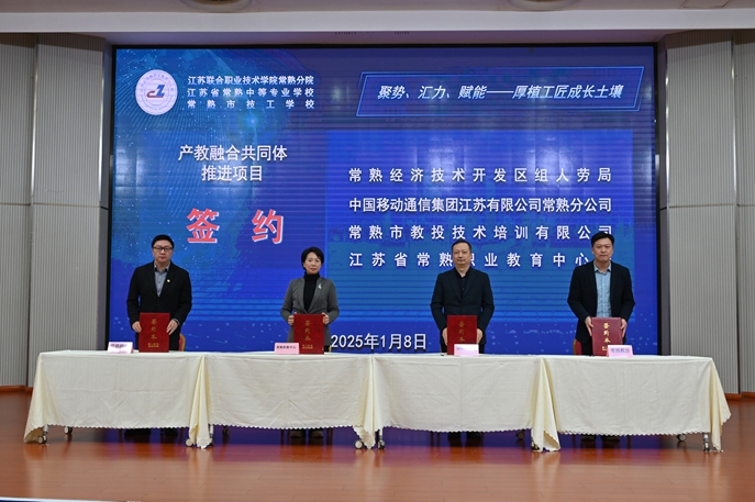 學校在常熟經濟技術開發區牽頭下,和經開區重點企業華域視覺、拓彼亞、通潤汽車零部件簽訂汽車及零部件學徒制聯合培養的“1+1+N”協議;學校和中國移動常熟分公司、常熟市教投技術培訓有限公司簽核了校企合作協議,在基地共享、人才共培、課程共研等方面開展深度合作。