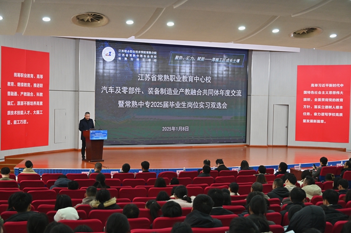 1月8日,為加快落實探索現代職業教育體系建設新模式、打造市域產教聯合體、打造行業產教融合共同體的戰略任務,學校召開“聚勢、匯力、賦能”--汽車及零部件、裝備制造業行業產教融合共同體年度推進會。常熟市教育局副局長陳丹、常熟市人社局副局長顧文杰、常熟市科技局副局長王天、常熟市工信局副局長俞平、常熟高新技術產業開發區組人勞局副局長陳疆、常熟經濟開發區組人勞局副局長郭浩、常熟移動公司總經理凌俞剛、常熟市教投技術培訓有限公司董事長何宇峰以及98家企業代表共同出席本次活動,活動由學校副書記王春主持。
